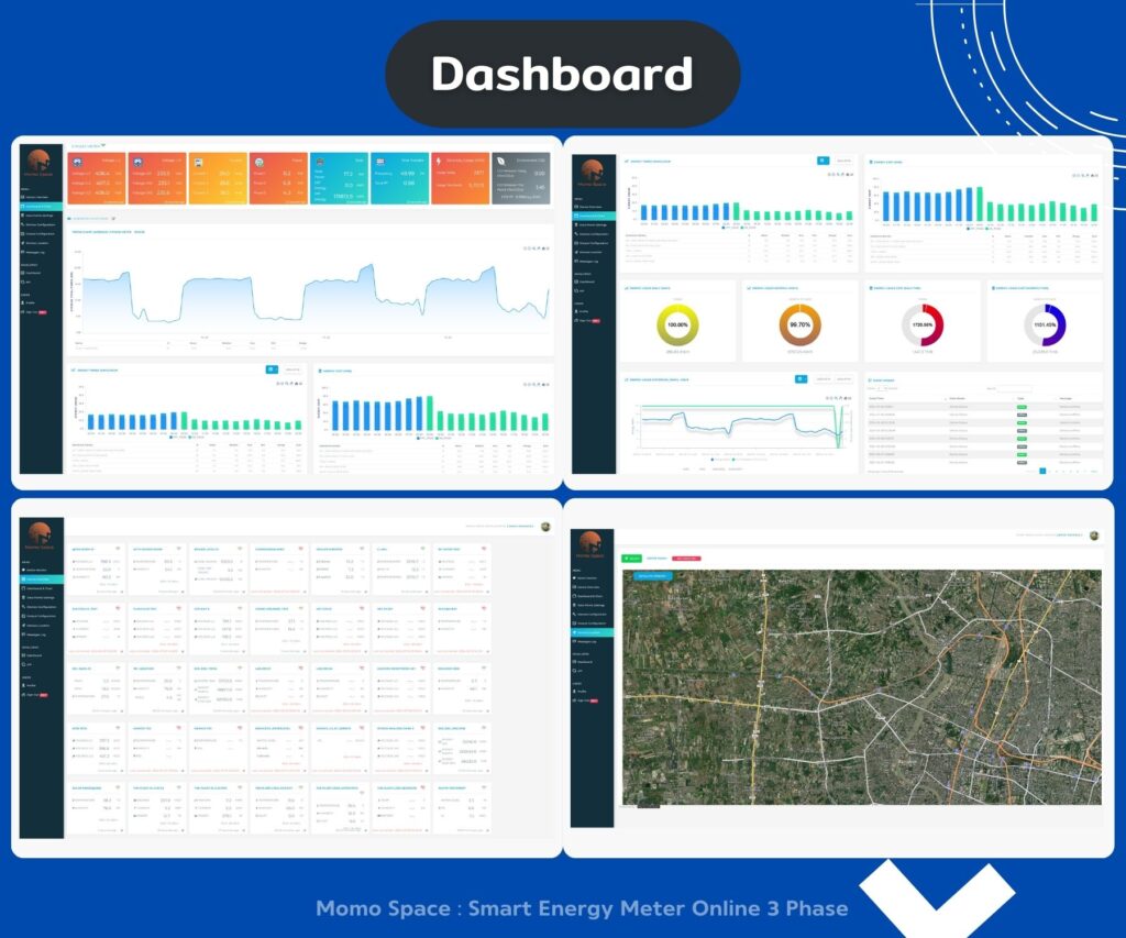 1. Dashboard เเสดงผล Realtime พร้อมสรุปผลการใช้พลังงาน รายชั่วโมง รายวัน เเละรายเดือน