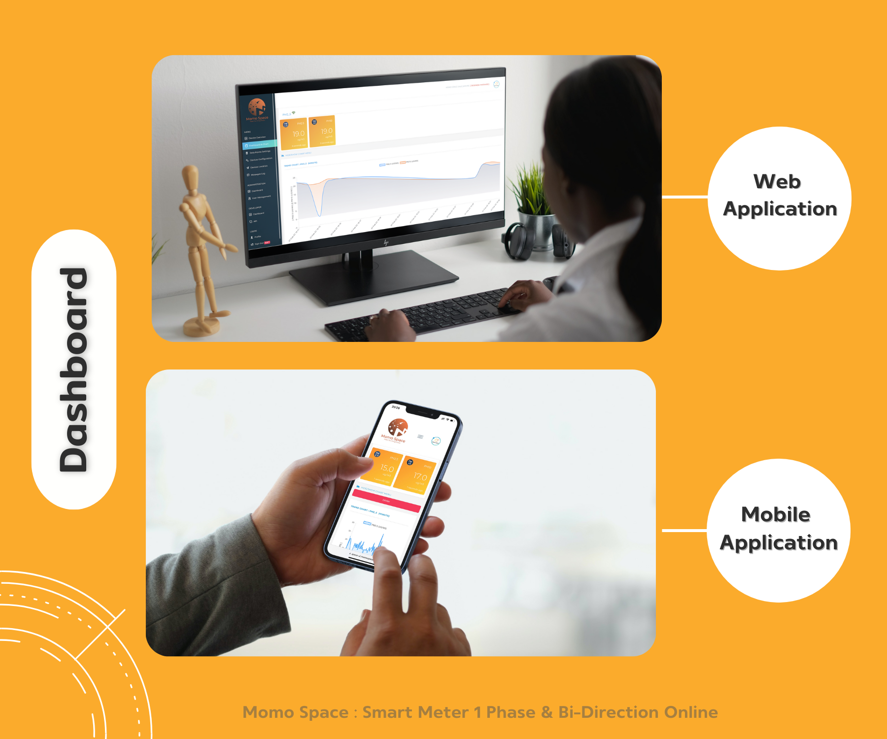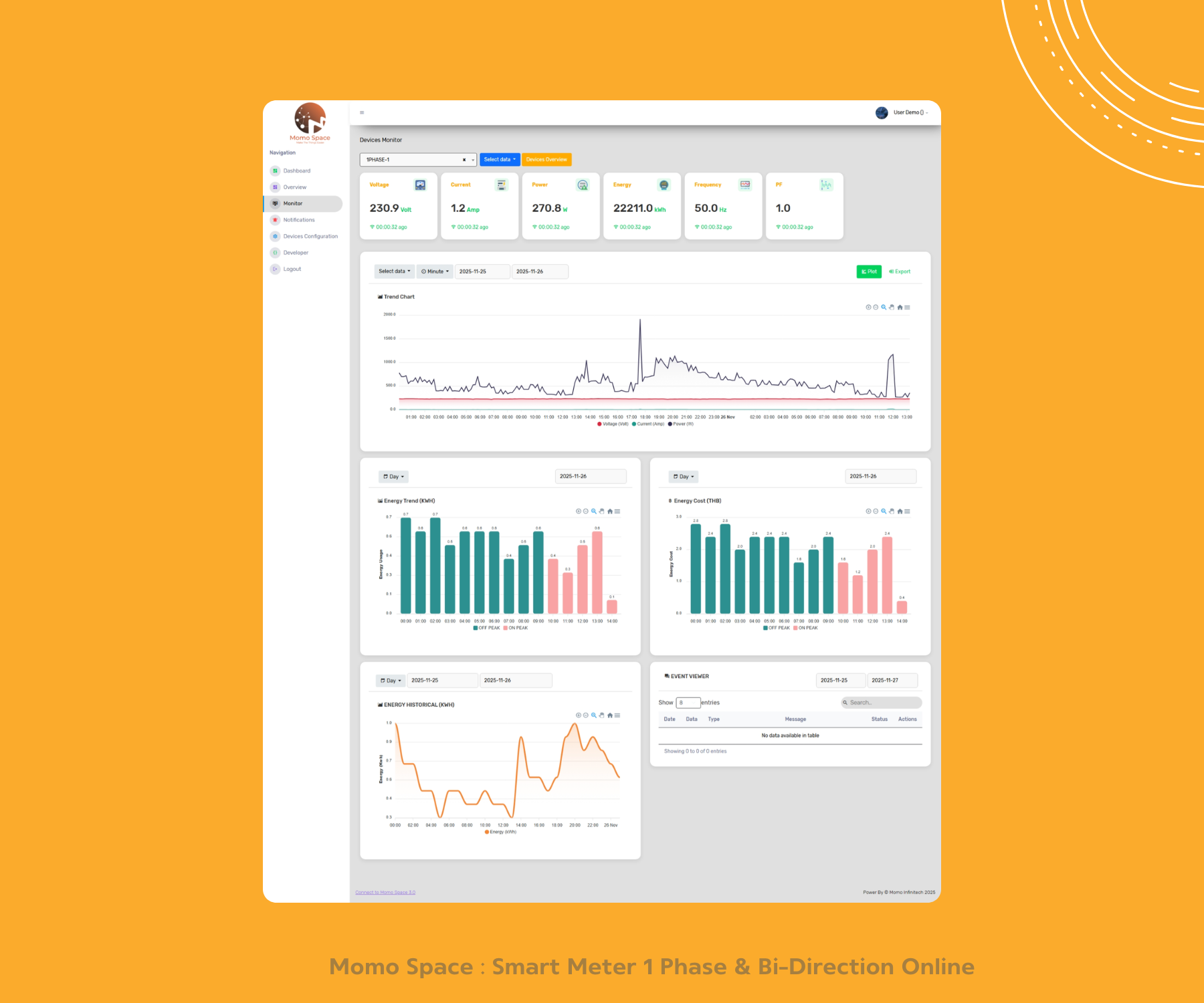 Dashboard เเสดงผล Real time พร้อมสรุปผลการใช้พลังงาน รายชั่วโมง รายวัน เเละรายเดือน